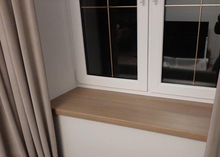 У нас можно заказать подоконники из сращенной и цельноламельной древесины с покрытием и без, любой формы и размера, как стандартные - так и по индивидуальным размерам.